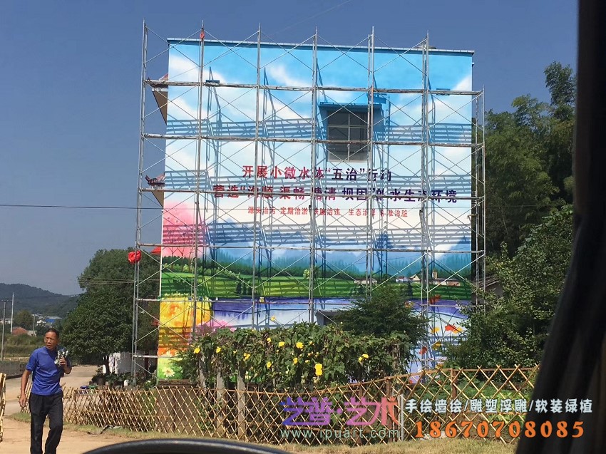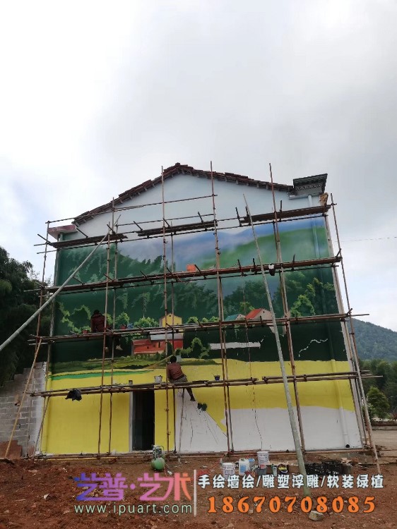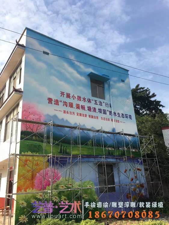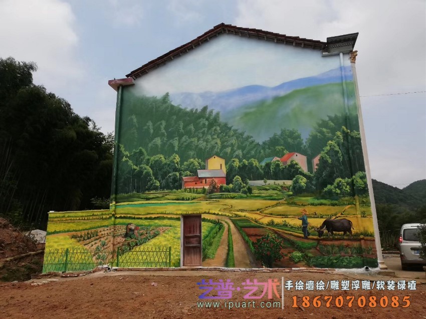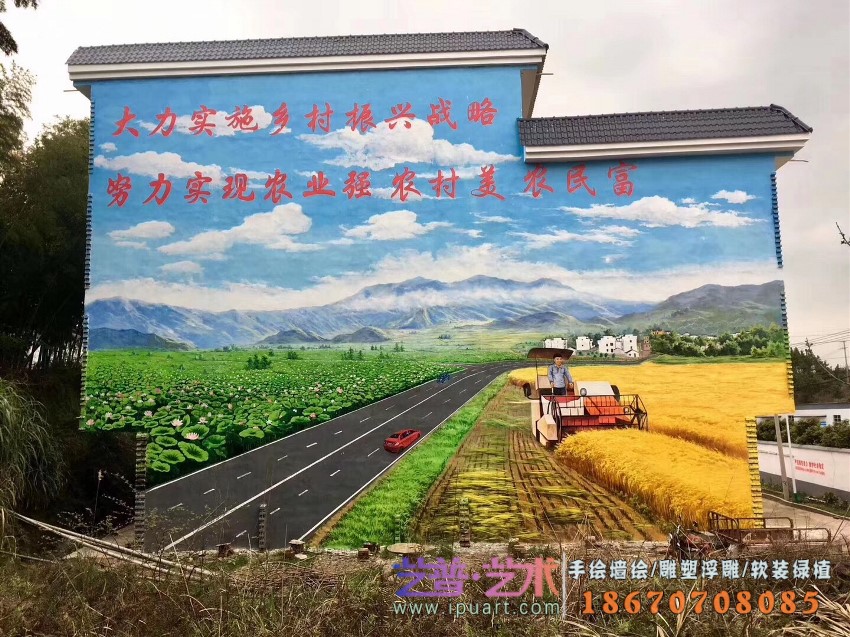 美丽乡村文化墙写实油画
